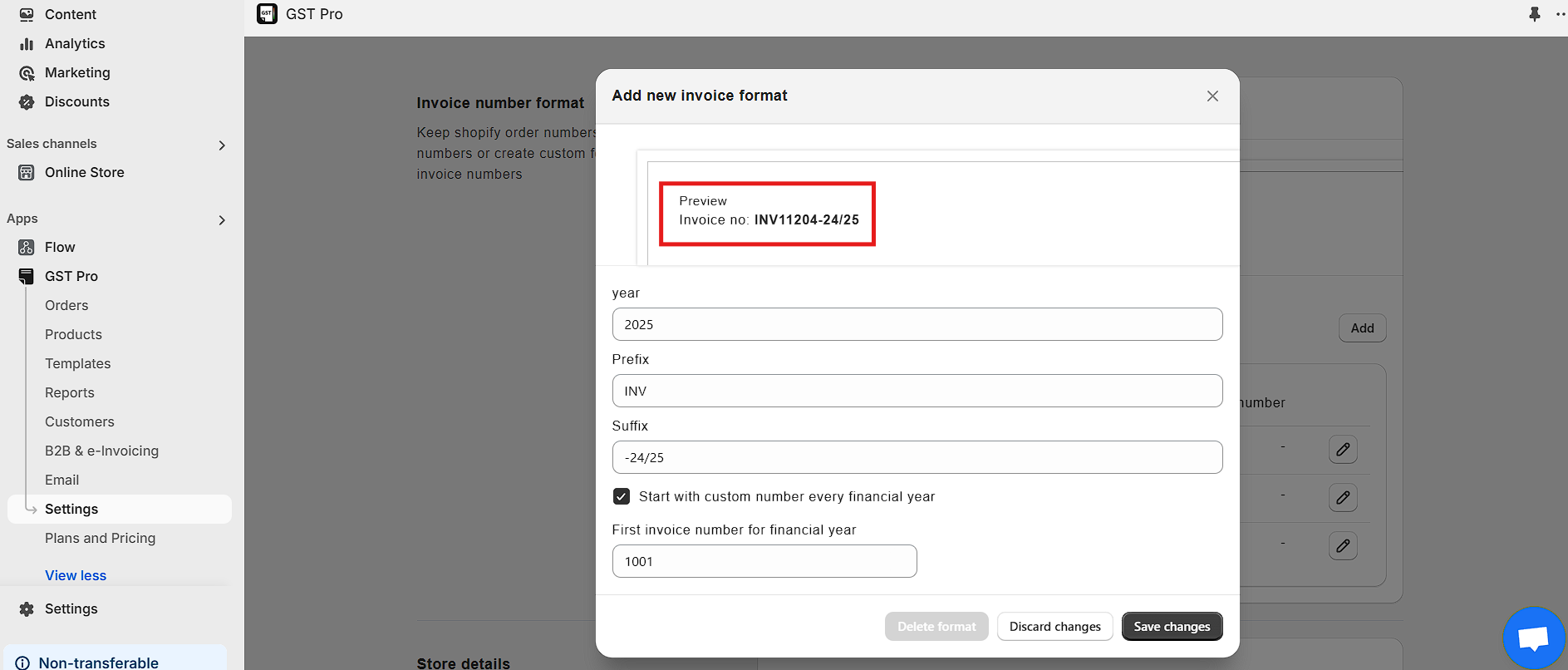 Customize Invoice Number Format